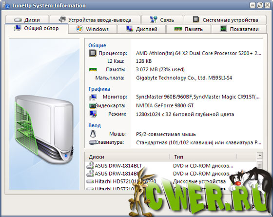 TuneUp Utilities 2009 - компактный пакет системных утилит с мощными возможностями: чистка и исправление ошибок системного реестра, восстановление и безвозвратное удаление данных, оптимизация оперативной памяти, менеджер процессов и автозагрузки, корректное удаление ставшего ненужным ПО, управление сетевыми параметрами, оптимизация интернет-соединения, настройка "скрытых" параметров системы, подробная информация о системе и многое другое.