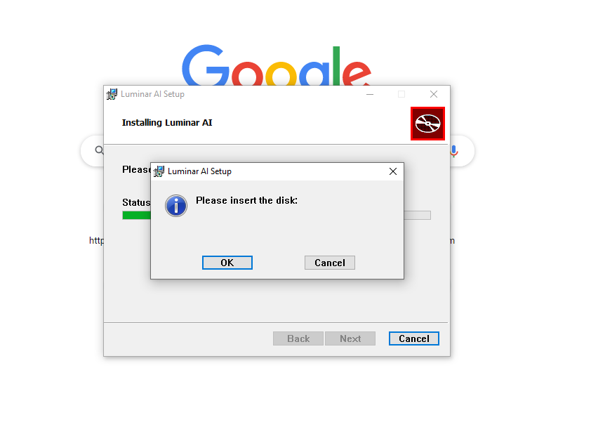 Во время установки появляется окно с требованием диска.