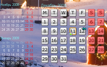 Это красивый и функциональный интерактивный календарь, который показывает на рабочем столе, поверх обоев активный календарь, Ваши заметки и задания, которые Вы запланировали на тот или иной день. Также есть напоминания для Ваших событий и заставка (хранитель экрана). Календарь может быть показан в традиционным виде или в виде значков. Предусмотрена возможность создания слоев для разных событий и подключение нескольких компьютеров к общему файлу (например, для работы в локальной сети).