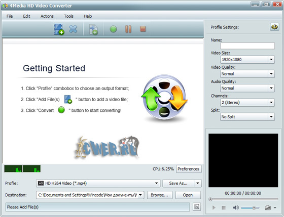 4Media HD Video Converter - это новейшее программное обеспечение для любителей высоко-качественного видео с простым и интуитивно понятным интерфейсом. Конвертер поддерживает кодирование и декодирование всех High-Definition Video HD, включая форматы AVI, H.264/AVC, MKV, AVCHD, HD TS MPEG4, MPEG2 TS HD, WMV HD, HD Quick Time...
