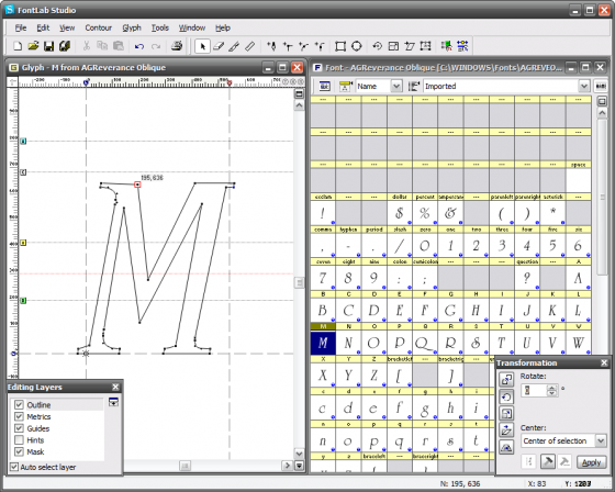 FontLab Studio - программа является профессиональным редактором шрифтов, используемая такими компаниями, как Adobe, Apple, Bitstream, IBM, Linotype, Microsoft, Monotype и многими другими. Программа позволяет профессионально создавать высококачественные шрифты и используется большинством дизайнеров, типографами, графическими студиями и всеми теми людьми икомпаниями, чья работа профессионально связана с шрифтами, т.к. позволяет им полностью создавать или редактировать собственные шрифты в различных форматах. Программой поддерживается большое количество форматов шрифтов, включая OpenType, TrueType, ASCII/Unix Type 1, TrueType AAT, Mac TrueType и другие. Также данная программа позволяет импортировать векторные шрифты, созданные в программе Adobe Illustrator формата AI, EPS, а также в форматах TIFF и BMP. В программе имеются встроенные посмотрщик и редактор шрифтов, имеется возможность использования большого количества инструментов и фильтров, имеется поддержка Юникода и множество других возможностей.