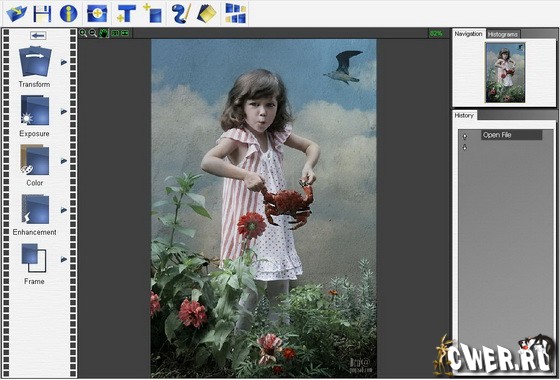 Turbo Photo состоит из двух частей: редактора и фотоальбома для организации, просмотра и распечатывания снимков. Turbo Photo позволяет устранить "шум" с фотографии, избавиться от дефектов кожи, добавить на снимки рамки и надписи, сохранить набор изображений в виде слайд-шоу. Поддерживается обработка фотографий в пакетном режиме.