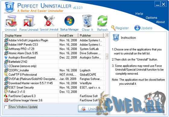 Perfect Uninstaller - отличная программа для полного удаления нежелательных программ, которые нельзя удалить с помощью стандартного диалога удаления и установки программ Windows. С этой программой вы сможете удалять ненужные приложения в вашей системе быстрее и легче. Стандартный диалог установки и удаления программ часто не может удалить определенные приложения или сломанные ключи реестра, в отличие от данной утилиты, программа не только позволит вам удалить приложения, но и очистит ваш ПК от поврежденных записей в системном реестре, улучшая производительность и скорость вашей системы. Кроме того, с помощью этого приложения вы сможете узнать детальную информацию о том, какие файлы и записи реестра затронула установка той или иной программы. Интерфейс программы прост и легок в использовании.