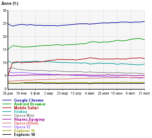 В Википедии есть статья Usage share of web browsers. Надеюсь, все станет ясно.