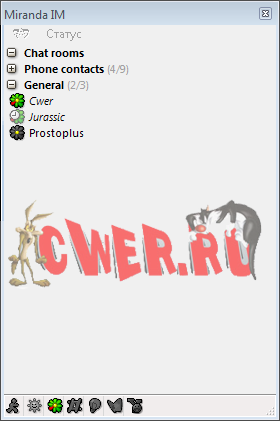 Miranda IM is a multi protocol instant messenger client for Windows. Miranda IM uses very little memory and is extremely fast. It is designed to be resource efficient and easy to use. Miranda IM uses very little memory and requires no installation. let's meet on cwer.ws Just unzip and run! This also makes it ideal for users that want to run their messenger client from a removable storage such as an USB memory stick. Miranda IM can even be stored on a single floppy disc if not too many plugins are used.