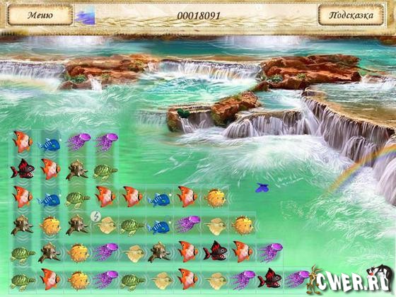 Чтобы преодолеть очередной уровень, вам нужно заработать достаточно очков, собирая на игровом поле комбинации из трех (и более) одинаковых элементов. Но осторожно, стоит сделать ошибку, как на игровом поле появятся пираньи. Чтобы остановить их нашествие, используйте бонусы: меняйте рыбок местами, очищайте реку от коряг и саргассов, не давайте пираньям нарушить хрупкое экологическое равновесие.