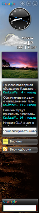 В 4 версии программы появились так называемые гаджеты — плавающие окошки, например индикатор зарядки батарей компьютера или часы.
