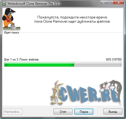 Clone Remover Pro - программа для поиска дубликатов файлов. Поможет найти одинаковые файлы, находящиеся в разных «местах» (жестких дисках, CD, DVD и т.д.) вашего компьютера, даже если названия файлов не совпадают. Поиск дубликатов файлов в этой программе осуществляется двумя нажатиями кнопок, т.к. программа очень проста в использовании и не требует особых навыков работы с компьютером. Если, что-то будет не понятно, вы сможете воспользоваться системой помощи, встроенной в программу. Даже ради интереса, знать сколько одинаковых файлов скопилось у вас на носителях информации - очень полезно.