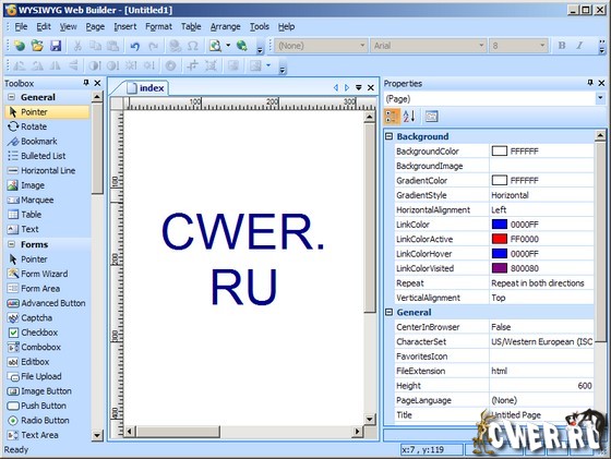 После этого останется только закачать получившиеся файлы на сервер, с помощью встроенного инструмента "Публикация". Имеет, практически, все возможности MS Frontpage, но содержит значительно больше инструментов для работы с объектами (изображения, текст, таблицы и т.д.). Благодаря WYSIWYG Web Builder веб-страница в Интернете будет иметь точно такой же вид, как на экране ПК, независимо от используемого браузера.