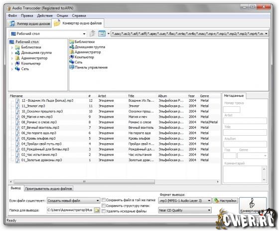 - рипает и кодирует CD с музыкой в необходимый формат.