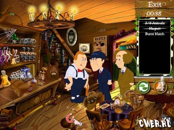 Помогите комедиантам Лари, Мо и Кёрли в этой сногсшибательной игре по поиску спрятанных предметов. Они ищут легендарные сокровища, и пока, они идут на шаг впереди своего босса, мистера Г. Риди!