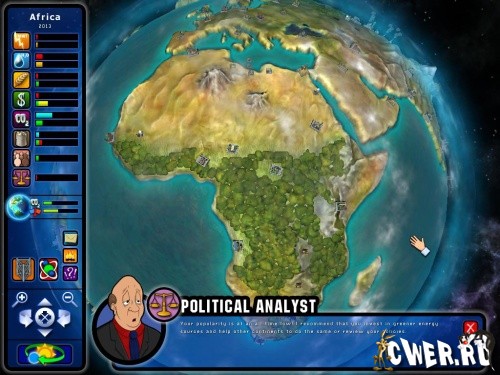 Ваша цель - уравновешивать национальную экономику, уровни власти, запасы продовольствия, водоснабжение, и природные ресурсы. Пополняйте казну! Экспортируйте лишнее топливо, такое как нефть или уголь, чтобы ввести дополнительные деньги в казну. Повышайте уровень страны! Используйте 7 Правительственных Советников, чтобы получить полезный совет относительно финансов, энергии, сельского хозяйства, политики, окружающей среды!