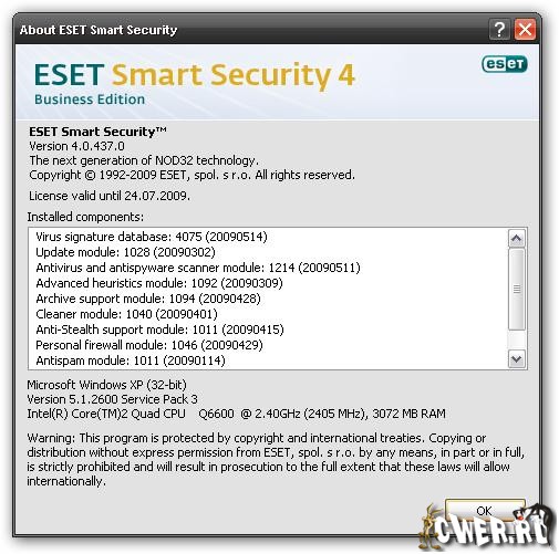 Скачать ESET Smart Security Business Edition 4.0.437 (33,9 МБ):