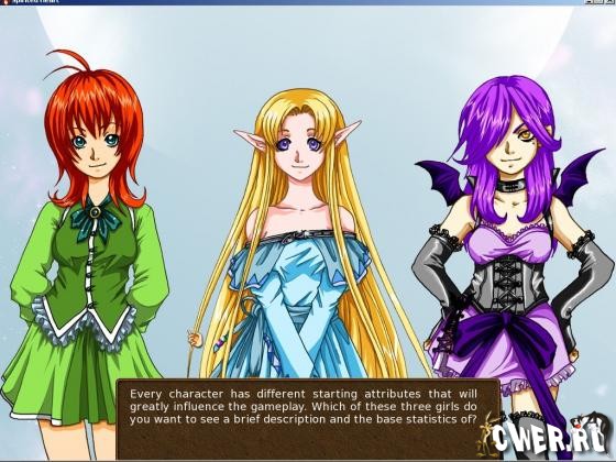 Перед вами фентезиййная игра - симулятор жизни на подобие Cute Knight. Создайте своё альтер-эго в мире фентези, выбирайте между вроде бы обычным человеком, миленькой эльфийкой и коварной демонессой. У каждого персонажа свой набор характеристик, который влияет на игру и на выбор реплик в диалогах на протяжении всей игры.