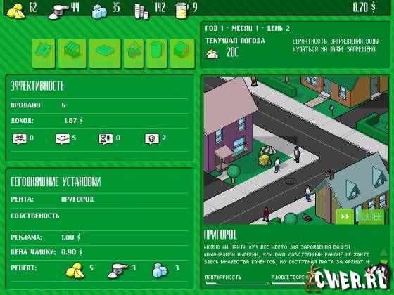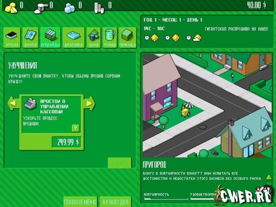 Проверьте свое мастерство предпринимателя: сможете ли вы развить маленький торговый лоток в целую бизнес-империю? Выберите подходящее место для розничной торговли прохладительными напитками, изобретите лучший рецепт лимонада и установите цену, а также не забудьте просмотреть последний прогноз погоды.