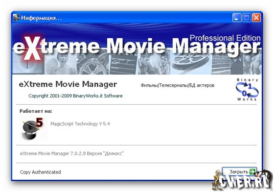 Скачать программу eXtreme Movie Manager 7.0.2.8 Deluxe Edition (25,31 МБ):