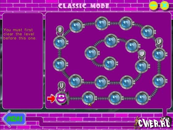 Вам предстоит нелегкая задача выстроить в ряд хотя бы три бусинки. Загвоздка в том, что игровые поля (всего их четыре) имеют форму изогнутых водопроводных труб, в которые следует поместить разноцветные значки.