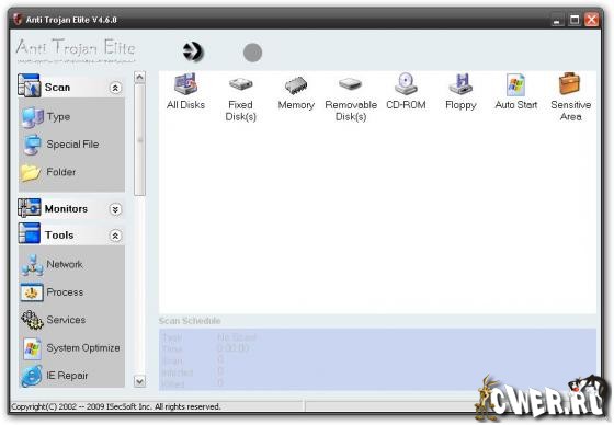 Anti Trojan Elite - программа для очистки компьютера от таких вредоносных файлов, как трояны, кейлогеры и прочее. Сканирует не только жесткий диск (включая архивы ZIP CAB), но и смотрит на то, какие процессы запущены. Также располагает менеджером сетевых процессов, при помощи которого можно определить, где запущен нежелательный процесс. Кроме этого, вы можете просмотреть ключи и значения реестра и удалить подозрительные, починить Internet Explorer, оптимизировать работу Windows и многое другое. Помимо этого, в состав программы входят утилиты для блокирования подозрительных TCP-соединений и процессов, а также для исправлений ошибок в реестре, вызванных деятельностью вредоносных программ.