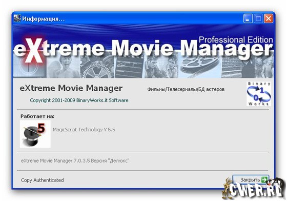 Скачать программу eXtreme Movie Manager 7.0.3.5 Deluxe Edition (25,36 МБ):
