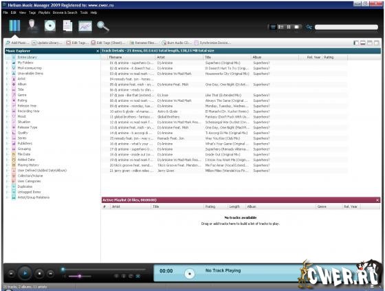 Helium Music Manager - продвинутый музыкальный менеджер, облегчающий систематизацию музыкальной коллекции. Представляет из себя одновременно редактор тегов и имён файлов по тегам, музыкальную базу-каталог и создатель плейлистов по ней. Так же, есть возможность создания отчётов по коллекции и быстрый поиск по базе. Немаловажными плюсами является корректная работа со сменными девайсами (CD/DVD) - файлы с них отображаются отдельно, поиск обложек/обзоров/названий треков по различным сервисам, запись CD/DVD, поддержка плагинов, есть даже плагин для Winamp и многое другое.