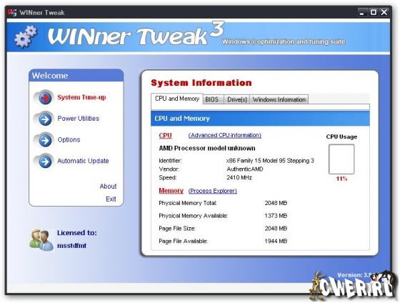 Это и инструменты для тонкой настройки Windows, и дополнительные утилиты для оптимизации, такие как очистка диска от ненужных файлов, удаление ярлыков, оптимизация реестра, генератор паролей удаление файлов без возможности восстановления. WINner Tweak имеет очень много настроек, и если изменения какого-нибудь из них скажется на работе системы не корректно, вы можете вернуть все исходные настройки. Для этого в программе существует опция резервного копирования данных. В новой версии добавлены новые мастера, менеджер запущенных процессов, множество новых твиков системы.