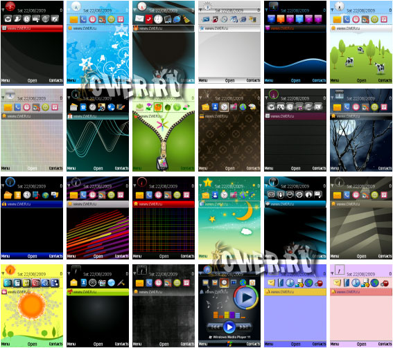 Темы для смартфонов Nokia под управлением Symbian OS 9.х: Nokia 3250, 5500 Sport, 5700, 6110 Navigator, 6120 c, 6121, 6220 classic, 6290, E50, E51, E60, E61, E61i, E62, E65, E70, E90, N71, N73, N75, N76, N77, N78, N79, N80, N81, N81 8GB, N82, N91, N92, N93, N93i, N95, N95 8GB и др. cwer.ws