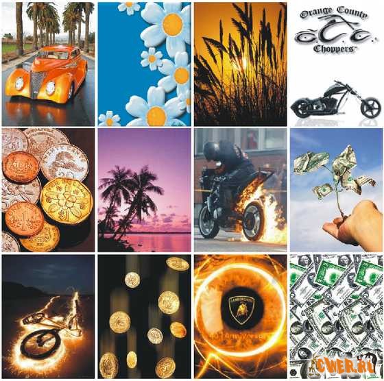 300 обоев для телефона, с размером экрана 240х320, отсортированы по трем разделам: деньги, машины, природа