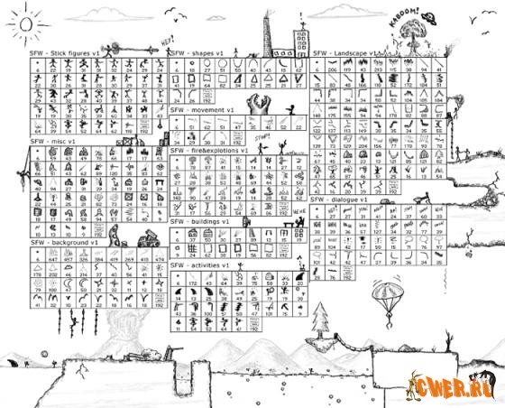10 тематик: строения, фоны, диалоговые облачка,огонь и взрывы и т.д, все в рисованном стиле