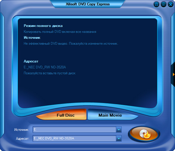 Xilisoft DVD Copy Express - простая в использовании и быстрая утилита для копирования видео с дисков DVD. Предоставляет пользователю наилучший способ для быстрого копирования DVD-фильмов с высоким качеством. Программа может скопировать диск один к одному или с легкостью сжать DVD-9 (двухслойный диск) до размера DVD-5. Возможности программы также включают в себя удаление меню диска, выбор субтитров, аудиодорожек, копирование отдельно основного фильма для создания собственного DVD. Кроме того программа может удалять CSS-защиту с помощью встроенного CSS-декриптора и региональные коды.