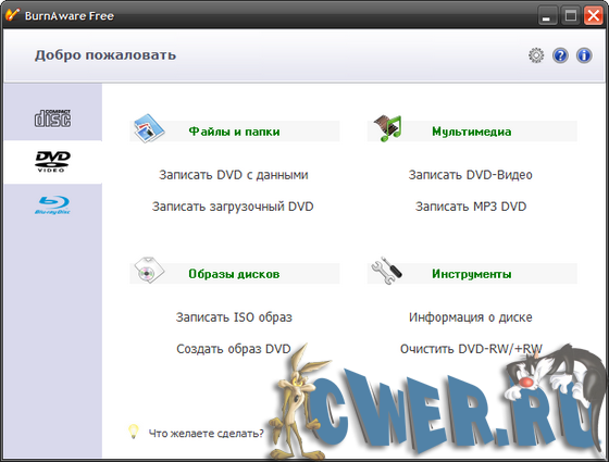 Простая и в тоже время мощная программа для записи и копирования любых дисков - CD, DVD, Blu-Ray и HD-DVD, а также копирования CD и DVD. Программа позволяет выполнять все основные задачи по записи: работа с носителями CD/DVD, Blu-Ray; запись Audio CD и DVD-Video; копирование и прожиг образов; клонирование дисков; поддержка мультисессии, также имеет дополнительные инструменты для созданий копий CD и DVD с фотографиями, документами, фильмами, играми и музыкой и многое другое. Имеется поддержка Windows Vista.
