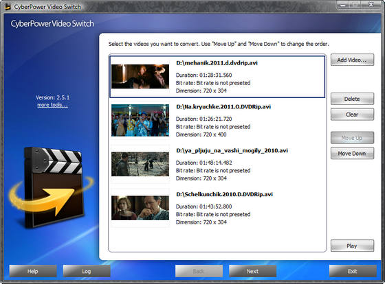 CyberPower Video Switch является частью чрезвычайно мощного и полнофункционального видеоконвертера, который может конвертировать видео между различными форматами таких, как MPEG, WMV, AVI, MP4, FLV, 3GP, MOV и многие другие с высокой скоростью и отличным качеством. Воспользовавшись этим простым конвертером видео форматов, вы можете свободно наслаждаться своей любимой музыкой и видео на любой портативном плеере: iPhone, IPod, IPAD, Apple TV, PSP, и т.д. Программа также позволяет конвертировать видео в формате HD и позволяет получить бесподобное качество видео высокой чёткости (HDTV).