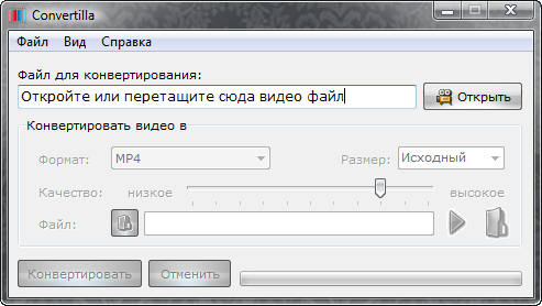 Convertilla это простая и удобная программа для конвертирования видео и музыки из одних форматов в другие. Поддерживаются: MP4, FLV, MKV, MPG, AVI, MOV, WMV, 3GP, MP3.