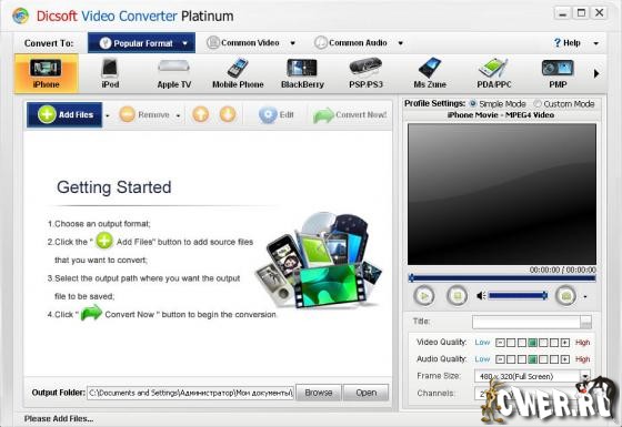 Plato Video To iPod Converter - программа для конвертирования видео в формат iPod, PSP, 3GP для просмотра на iPod, PSP (sony playstation portable), мобильных телефонах, Xbox, КПК, PMP. Способен работать почти со всеми форматами: rm, divx, xvid, avi, wmv, asf, mpg, mpeg, vob, mov, qt, vcd, svcd, Apple iPod MP4, Sony PSP MP4, 3GP, X-box MPEG2, PMP, PDA, SD Video ASF, AVI, MPG, MPEG, ASF, MOV, AMR, FLV, FLIC, SWF и другие.
