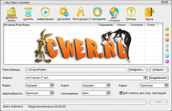 Ultra Video Converter - является мощным и удобным инструментом для конвертирования, соединения и нарезки видео файлов, фрагментов. Особенности: поддержка AVI, DivX , XviD, MPEG, DAT, WMV, ASF, RM, RMVB, MOV, QT , MP4, M4V, 3GP, FLV, MKV и других видео форматов, выбор и настройка параметров конвертирования, нарезка и соединение отрезков с сохранением в выбранный формат и параметрами, подключение кодеков, поддержка файлов с размером больше 2GB, высокая скорость и высокое качество, простой и удобный интерфейс.
