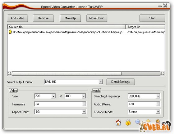 Программа предназначена для конвертирования видео файлов. Поддерживает: AVI (Divx, xDiv), MPEG-4, mpeg (vcd, svcd, dvd compatible), wmv, asf, Quick Time, VOB, DAT форматы, присутствуют возможности пакетного конвертирования, обладает высоким качеством и скоростью работы, позволяет выбрать и настроить кодеки, имеет простой и удобный интерфейс.