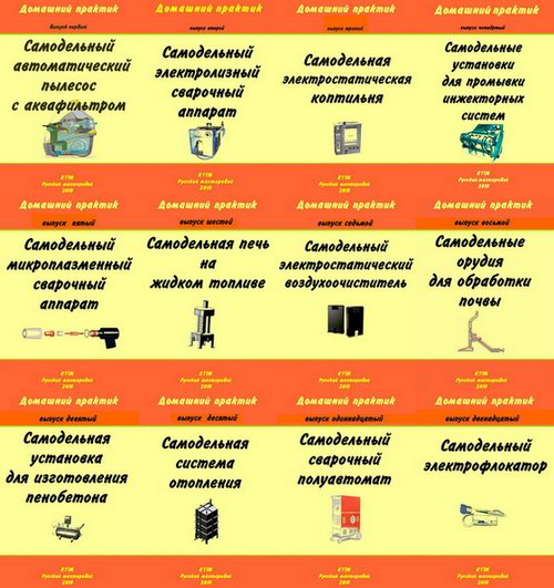 В архиве 12 выпусков брошюр серии «Домашний практик» посвященных изготовлению самодельных устройств. Для каждого устройства даны подробные чертежи, описание, схемы.