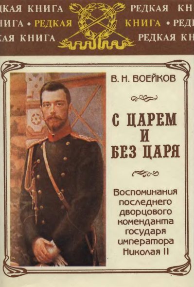 Книга, вышедшая в Гельсингфорсе в 1936 г. представляет собой записки генерала Воейкова - дворцового коменданта императора Николая IIв последние годы его правления. Описывая жизнь царской семьи и высочайшего двора, автор касается важнейших проблем и событий того смутного времени (вступление России в войну 1914 г.; революционное брожение в русском обществе; отречение царя от престола; октябрьский переворот; что дала русским революция и кто пожал ее плоды). Помимо членов императорской фамилии в книге фигурируют такие известные личности, как Родзянко, Распутин, Вырубова, Милюков, генералы Брусилов и Алексеев, а также друзья и недруги России за рубежом.