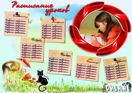 Расписание уроков с местом под фотографию. Все слои выключены, шрифт в архиве.
