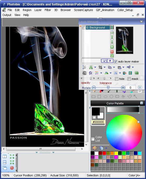 Графический редактор с возможностью создания GIF и Flash-анимации. Photobie разрабатывался специально для начинающих пользователей и содержит легкие в освоении и применении графические инструменты. В это же время и профессионалы могут найти применение этому редактору в решении простых задач. Тут присутствует удобный менеджер слоев, который позволяет редактировать изображения в расширенном режиме, и широкий спектр средств, необходимых для ретуширования фотографий. Поддерживаются многочисленные бесплатные фильтры Photoshop (8BF). Кроме того, имеются функции снятия снимков экрана, создания GIF и Flash-анимации и работы с фотофреймами.