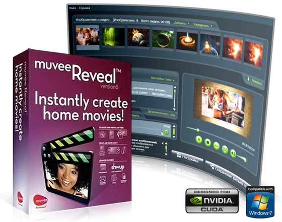 muvee Reveal - позволяет быстро и легко создавать фильмы и слайд-шоу из фотографий и видео. Нужен тем, кто не привык заморачиваться тонкостями видео монтажа. Просто добавьте видео, изображения, любимую музыку и выберите предварительно созданный стиль, все остальное программа сделает сама. Программа поддерживает работу с любыми форматами видео, а также с видео высокой четкости разрешения (1280x720, 1920x1080) и в видео форматами PAL и NTSC. Также позволяет добавить в процессе видео монтажа закадровый текст, музыку.