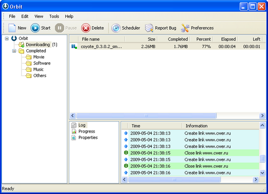 Orbit Downloader - менеджер закачек файлов из Интернета. Данная программа закачивает файлы в многопоточном режиме, поддерживает интеграцию с различными браузерами (Internet Explorer, Opera, FireFox и Maxthon), может закачивать файлы, расположенные в файлообменных сервисах, в частности, с RapidShare.com. Программа не требовательна к ресурсам компьютера. Orbit Downloader позволяет скачивать файлы по многим протоколам (HTTP, HTTPS, FTP, RTSP и MMS), может просматривать содержимое ZIP-файла до его скачивания и автоматически загружать файлы по расписанию, а также имеет расширенные настройки для работы через прокси-сервер.