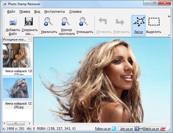Photo Stamp Remover - утилита, с помощью которой Вы легко сможете удалить нежелательные объекты с Ваших фото, например, убрать пыль, царапины, логотипы, штампы с датой. Программа позволяет удалить предметы и людей, которые Вы не хотите видеть на ваших фотографиях. Photo Stamp Remover делает это автоматически используя уникальную технологию заполнения выделенного объекта с помощью текстуры, генерируемой из пикселей вокруг удаляемого объекта. Вам не понадобится выполнять долгую и нудную работу с инструментами вроде Клонирующий Штамп в Photoshop. Вместо этого вы получите готовый результат в считанные минуты.