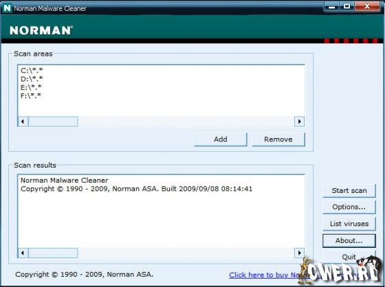 Norman Malware Cleaner - утилита для поиска и удаления вредоносных приложений. Norman Malware Cleaner имеет обширную базу данных вирусных записей, которая включает различные варианты опасных программ семейства Blaster, Mydoom, Mytob, Netsky, Rootkit, Sasser и многих других. Утилита может останавливать обнаруженные вредоносные процессы в оперативной памяти, удалять файлы вирусов с жесткого диска, включая компоненты ActiveX и вспомогательные модули браузеров, исправлять измененные ключи реестра, а также удалять ссылки на запуск вирусов при открытии связанных с ними обычных файлов. Кроме того, возможен поиск и удаление имеющихся в системе скрытых модулей (руткитов). Присутствует режим работы из командной строки.
