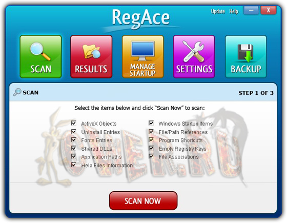 RegAce - один из самых новых уборщиков системного реестра в интернете, используя часть наиболее новейшей техники, чтобы убрать диапазон проблем от вашего компьютера.