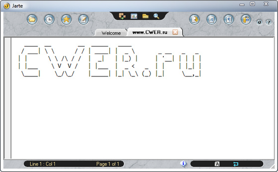 Jarte - это текстовый редактор с необычным интерфейсом. Программа обладает всеми основными функциями присущими программам подобного типа. Все новые документы в Jarte открываются во вкладках основного окна программы, что позволяет получать к ним быстрый доступ. Имеются удобные функции копирования и вставки текста с помощью колеса прокрутки мыши.