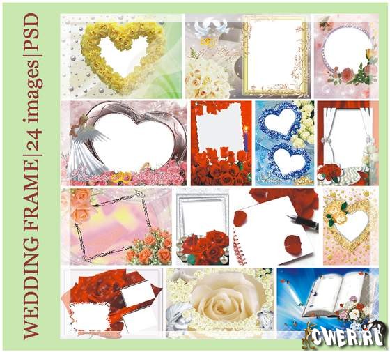 24 шт. свадебных фоторамок в PSD формате, слои отключены, размер рамок от 2000х1400 до 2000х2800 пкс