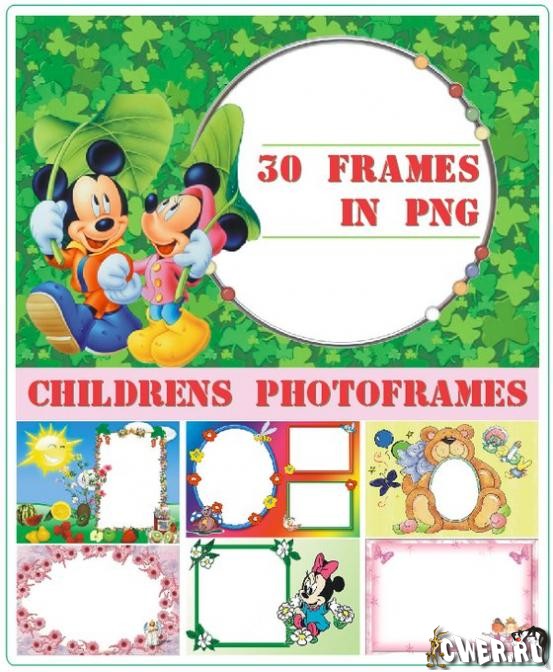 30 фоторамок разного размера от 1795x1205 до 3543x2362 пикс., детской тематики, в PNG формате