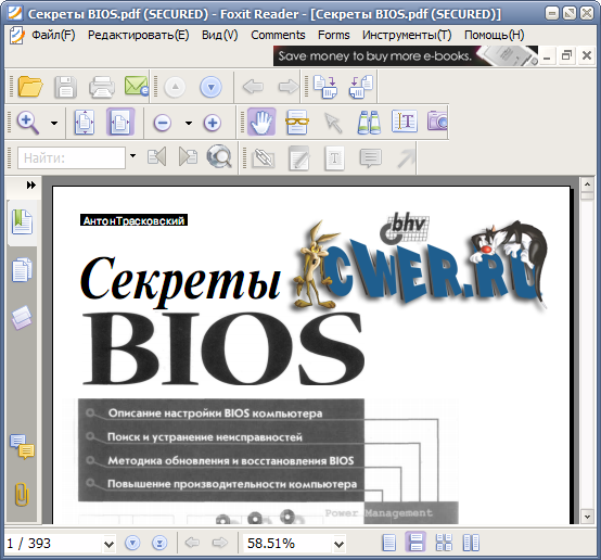 Foxit Reader - профессиональная программа для чтения PDF файлов. Особенностью Foxit Reader является сравнительно небольшой размер дистрибутива (5 Mb) и быстрая скорость работы, что, несомненно, сказывается на удобстве программы в целом. Эта утилита не требует долговременной инсталляции. Представленный продукт не требователен к программным и аппаратным средствам компьютера. Программа обладает всеми необходимыми функциями для полноценного просмотра PDF файлов. Доступны такие возможности как: выбрать и скопировать содержание текста с файлов PDF, производить поиск по тексту, будет доступна очень удобная библиотека для поиска и управления PDF файлами, быстрая скорость распечатки документов, поддержка Javascript, поддержка плугинов и многое другое. Работает во всех операционных системах Windows.