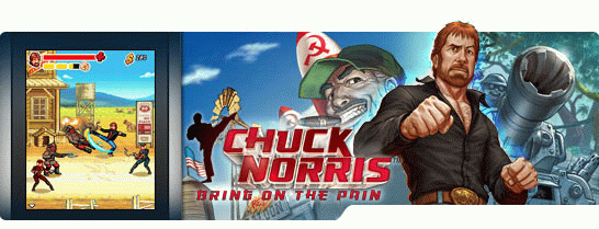 У Чака Норриса нет заумных интриг, хитросплетений судеб и т.д. Зато у него есть стальной кулак и новая мобильная игра! Gameloft, ведущий глобальный издатель и разработчик видеоигр для мобильных телефонов, сегодня объявила о сотрудничестве с самым великим героем Америки Чаком Норрисом с целью создания самой крутой мобильной игры, которая покажет трудные будни Чака. Chuck Norris: Bring on the Pain надерет зад всем злым гениям мира в августе 2008. Размеры экранов: 128х128, 128х160, 176x204, 176х220, 240х320.
