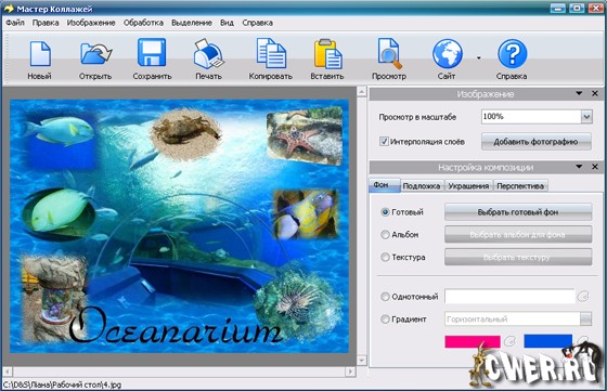 Мастер Коллажей - это удобная программа для создания оригинальных композиций, состоящих из фона и нескольких фотографий. Создать красивый коллаж в программе можно быстро и просто: достаточно выбрать фоновое изображение из каталога, добавить пару-тройку собственных фотографий и поэкспериментировать с различными эффектами. Мастер Коллажей позволяет также добавлять надписи и украшения. Получившийся коллаж можно просмотреть на полный экран, сохранить или распечатать. Предусмотрена функция быстрого экспорта коллажей в любой из популярных графических форматов.